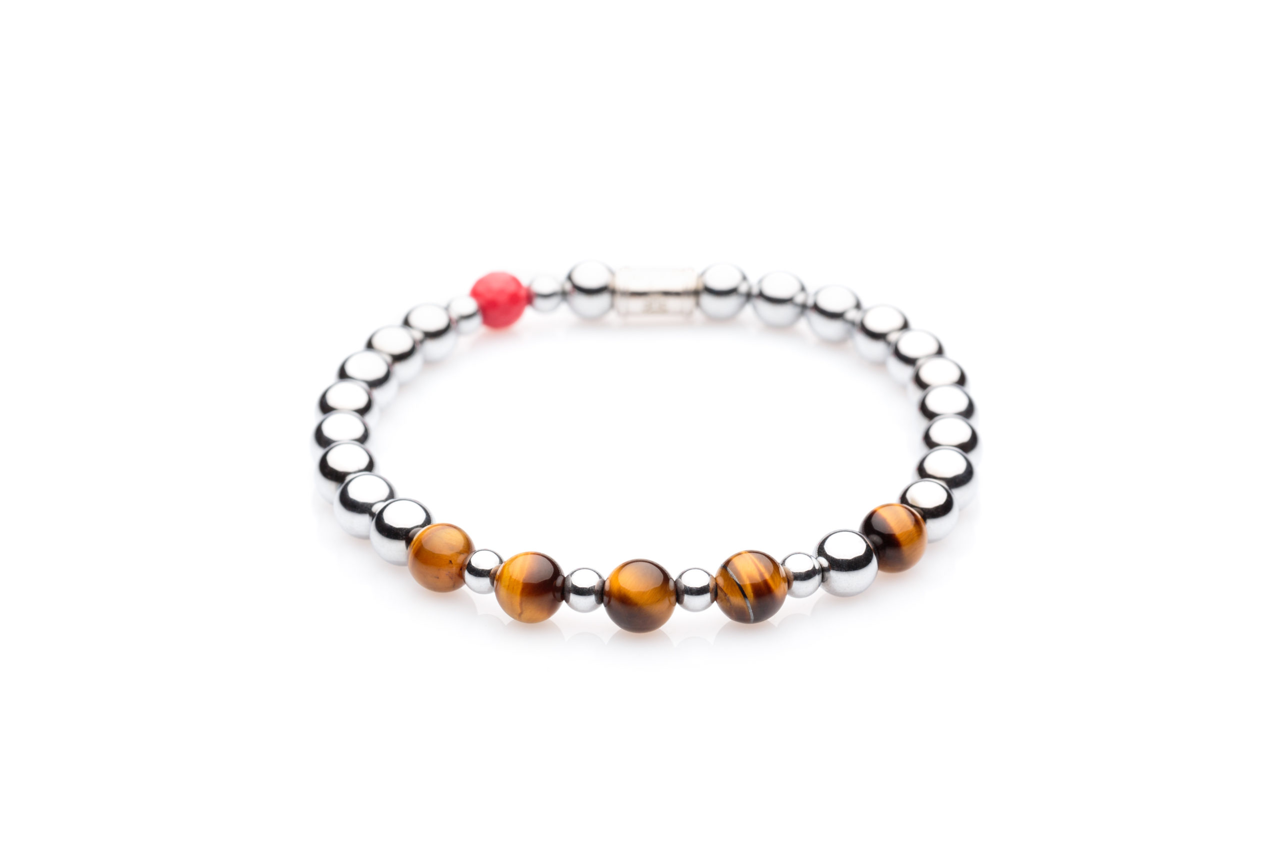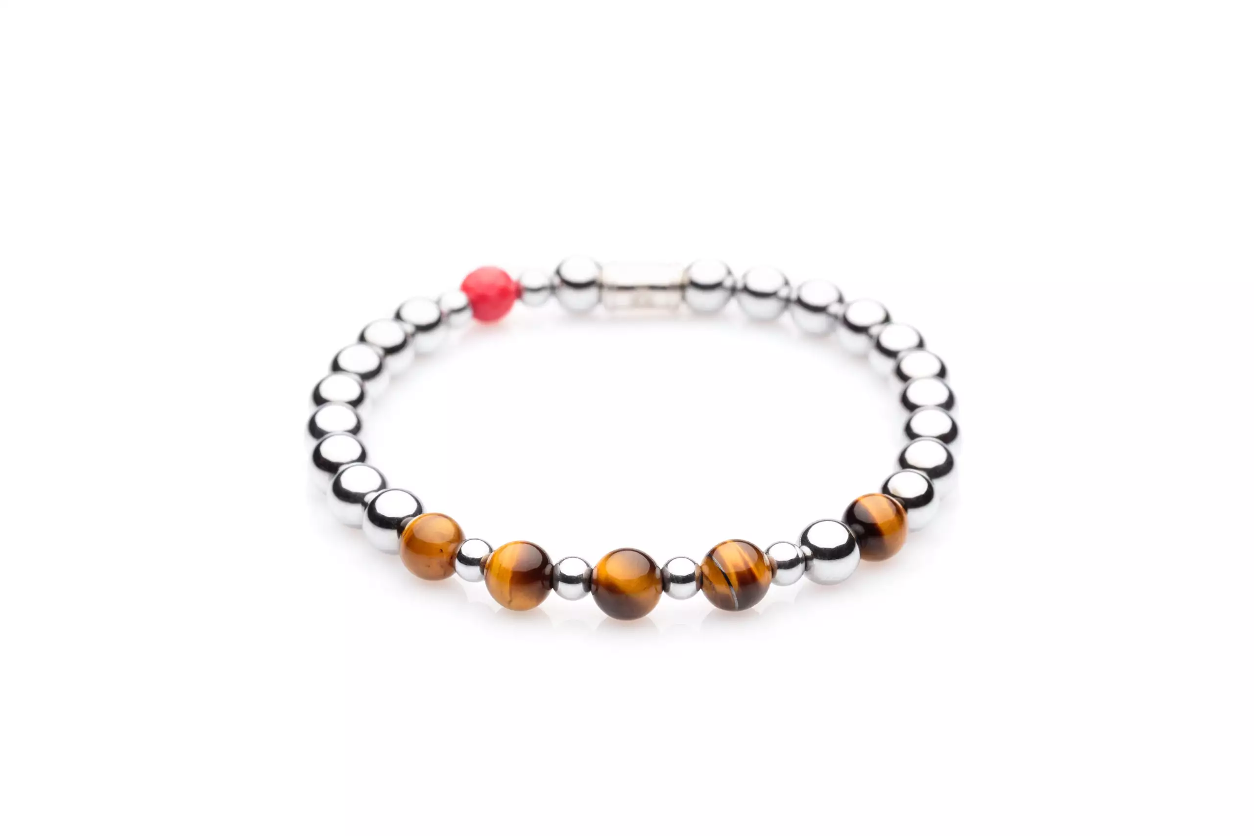 The bracelet beads are made with semi-precious stones.