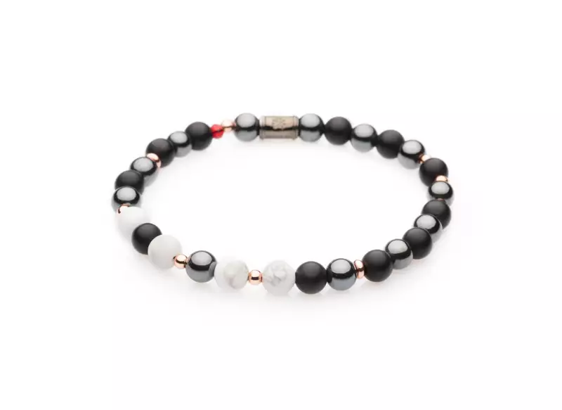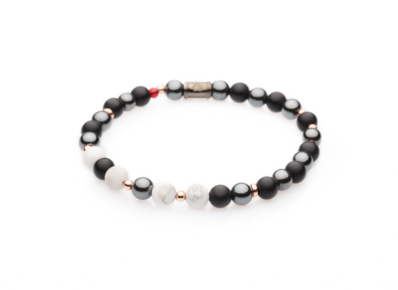 The bracelet beads are made with semi-precious stones.