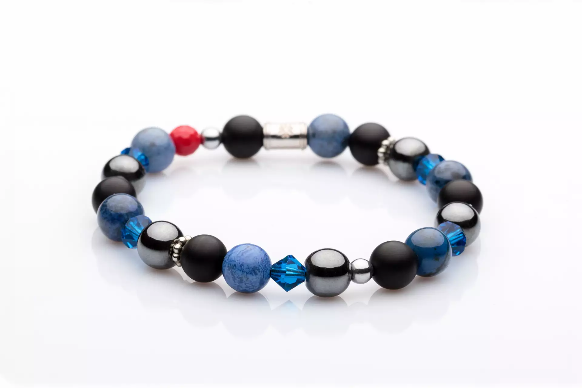 The bracelet beads are made with semi-precious stones.