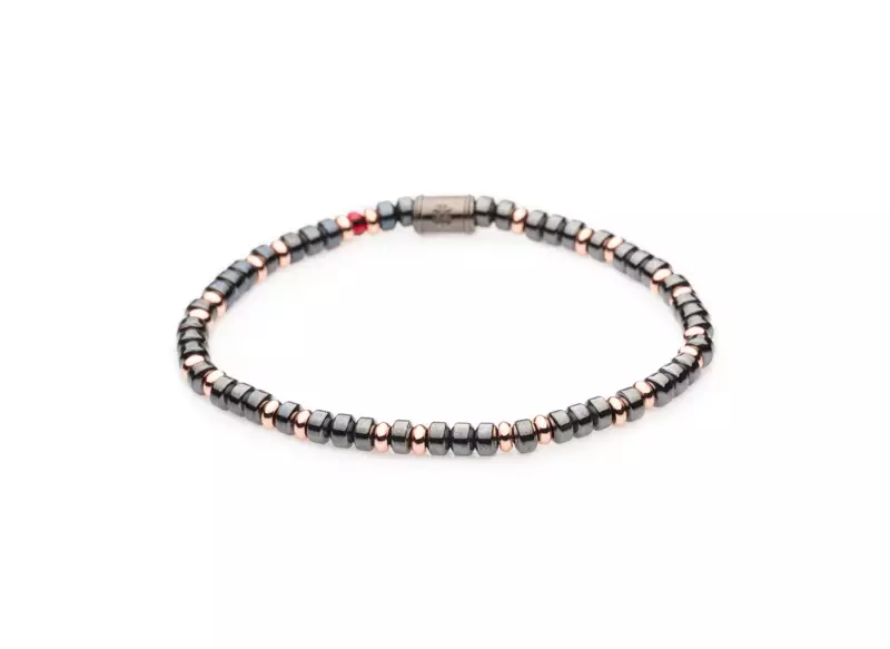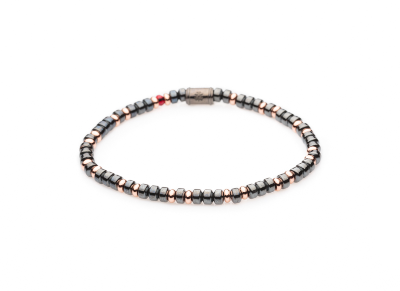 The bracelet beads are made with semi-precious stones.
