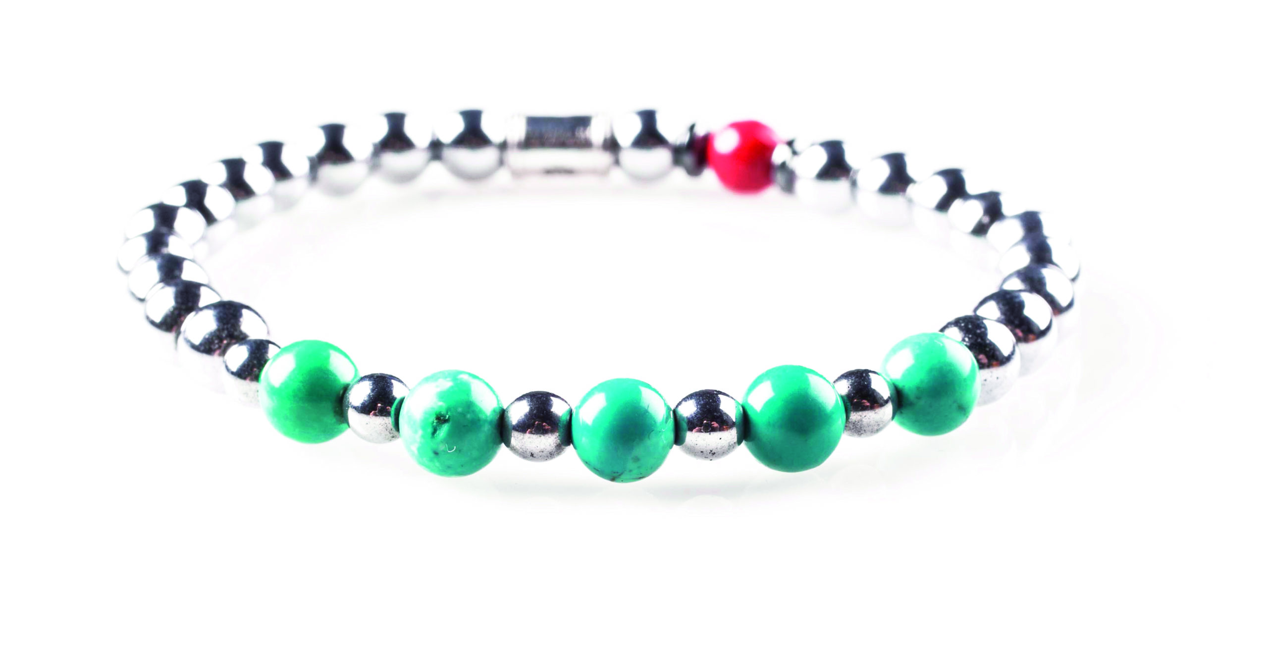 The bracelet beads are made with semi-precious stones.